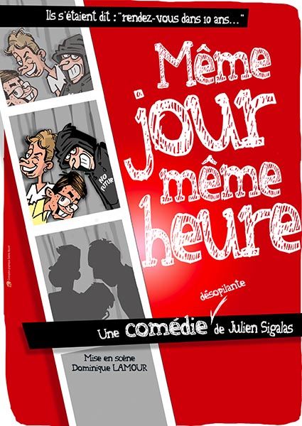 Ajoutez-y de la nostalgie, de l'émotion, de l'amitié et beaucoup, beaucoup d'humour. Saupoudrez de chansons. Pimentez le tout avec de l'interaction... Mélangez pendant une heure et quart. Vous obtiendrez "Même jour, Même heure", une comédie chantante et désopilante de Julien Sigalas.